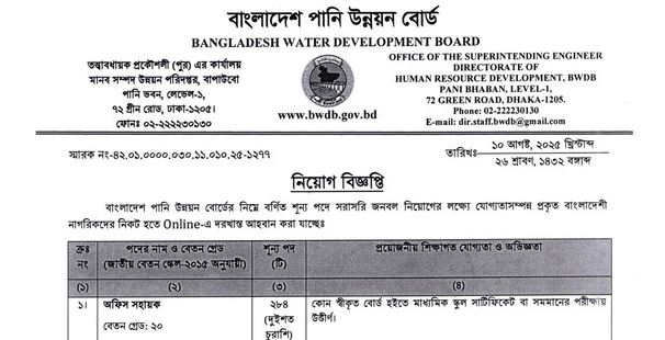 Bangladesh Water Development Board (BWDB) Job Circular 2025 has been published. The authority has published the BWDB Job Circular 2025. Bangladesh Water Development Board Office Sohayok Job Circular 2025 is good news for job seekers. All information on the Bangladesh Water Development Board Office Support Staff Job Circular 2025 is available below. Bangladesh Water Development Board (BWDB) is a Government …