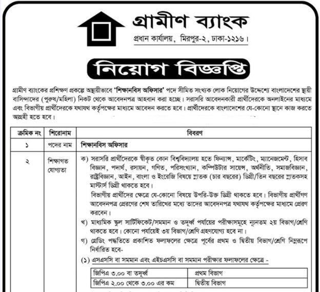 proactive and energetic freshers willing to accept challenging banking career as the following job position to meet the growing needs of its expansion program. Grameen Bank Limited Job Circular 2025 related all the information found my website below. Grameen Bank Job Circular 2025.